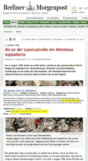 Diese 2413 Wörter lange Meldung kann man wieder ausbuddeln, wenn sich der Hauseinsturz zum 13. Mal jährt.